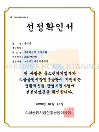한국홈스테이징의 단기임대렌탈하우스 집꾸미기서비스 <홈메이크업>이 선정되었습니다.